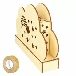 Youdoit Lampe Nuage Bois à Décorer 25 X 13,7 Cm + Masking Tape Doré à Paillettes 5 M