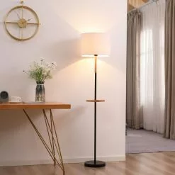 HOMCOM Lampadaire étagère Lampe étagère 26L X 26l X 160H Cm 3 étagères 4 Niveaux MDF Blanc