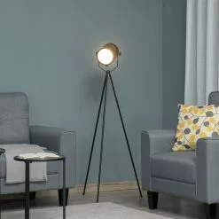 HOMCOM Lampadaire Trépied Design Contemporain 40 W Max. 170H Cm Métal Polyester Coton Noir Blanc
