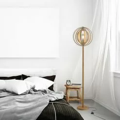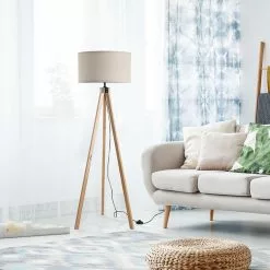 HOMCOM Lampadaire Trépied Style Scandinave 40 W Max. Dim. 45L X 45l X 152H Cm Bois De Pin Lin Beige