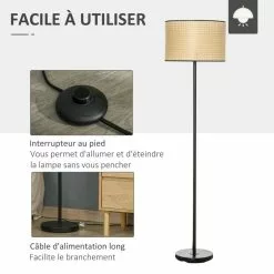 – Lampadaire cannage style cosy qui apportera une touche authentique tendance et moderne à votre intérieur