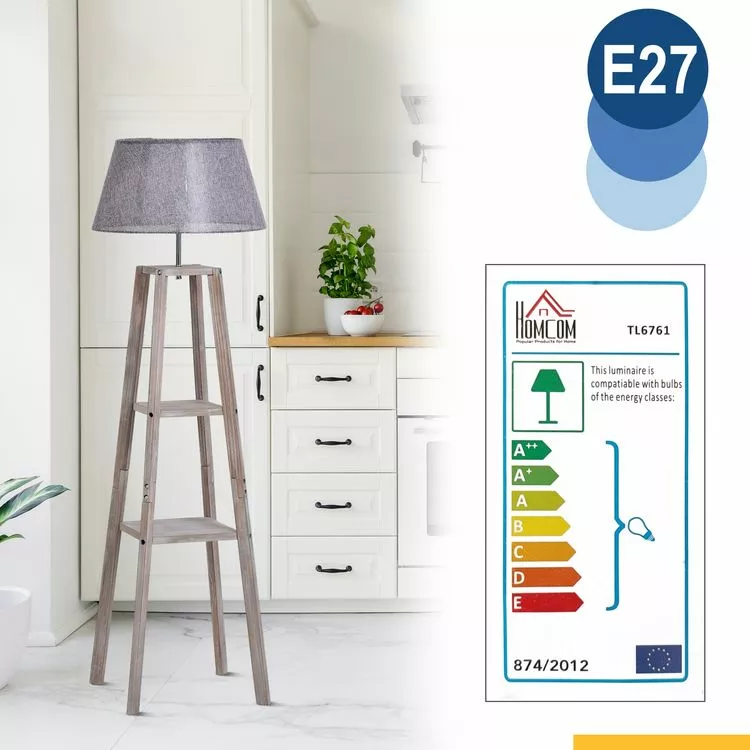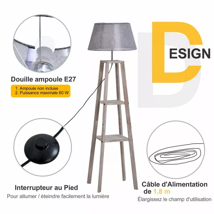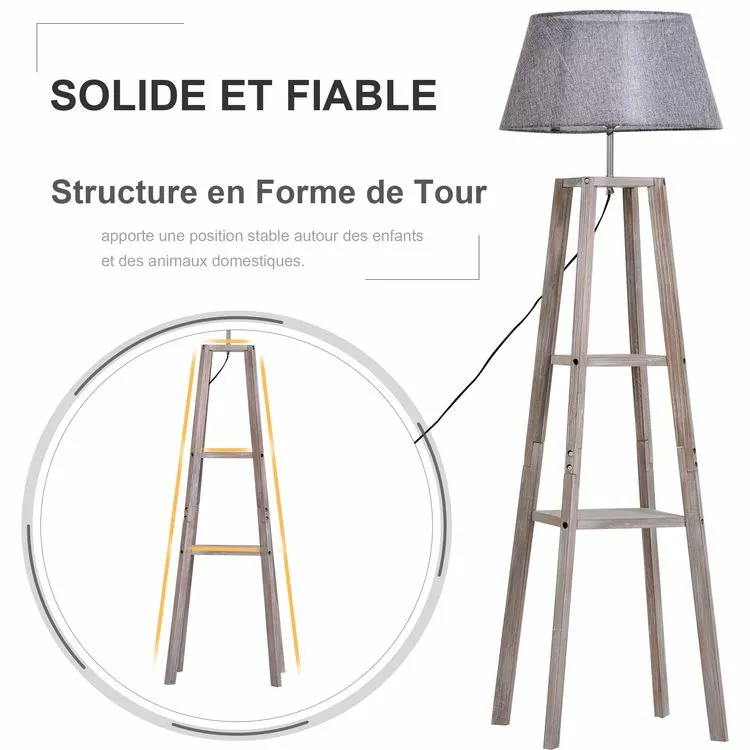 – Pieds en bois lampadaire en lin gris, lui donnant une décoration élégante et rétro