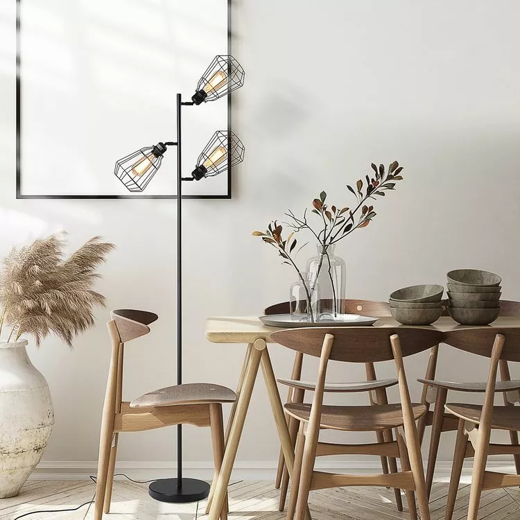 – Design industriel nĂ©o-rĂ©tro avec abat-jour (x3) en cage et structure mĂ©tal noir vous permettra d’ajouter une touche de style type loft New-yorkais Ă votre intĂ©rieur