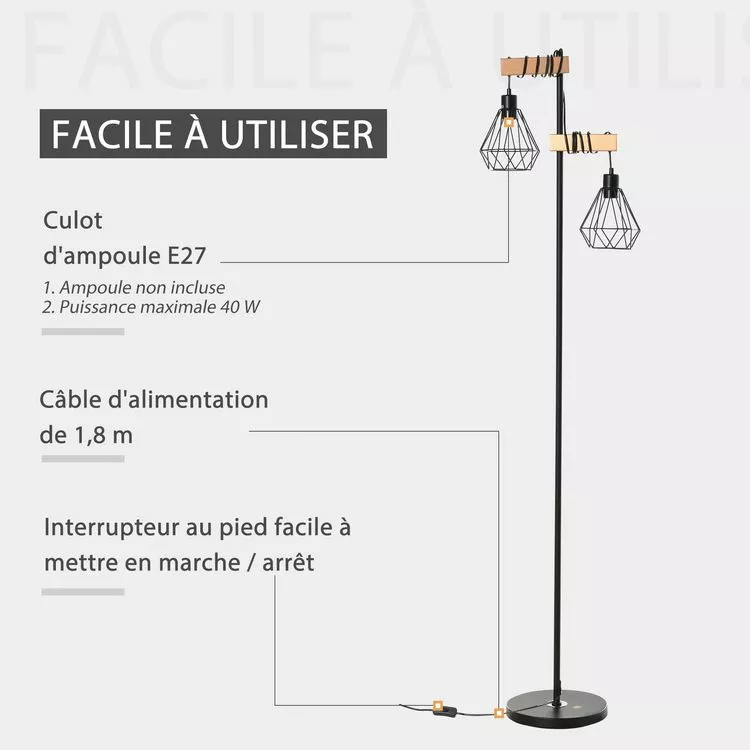 – Douilles : 2 x E27 (ampoules non incluses)