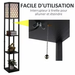– Lampadaire étagère élégant, adapté à tous les espaces : salon, salle à manger, chambre à coucher, bureau, couloir, etc.