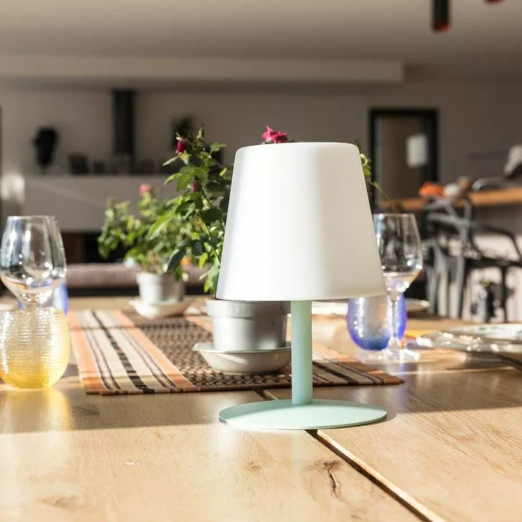 - UTILISATION EXTERIEUR / INTERIEUR : après une charge rapide de votre lampe Standy Mini Mint, vous pourrez utiliser cette lampe design partout, Ă l’extĂ©rieur comme dans la maison. Que ce soit comme lampe d’extĂ©rieur pour la terrasse, comme lampe de table pour le salon, comme lampe dĂ©co ou comme lampe de chevet dans la chambre d’enfant, la lampe Standy Mini Mint s’adapte Ă toutes les situations.