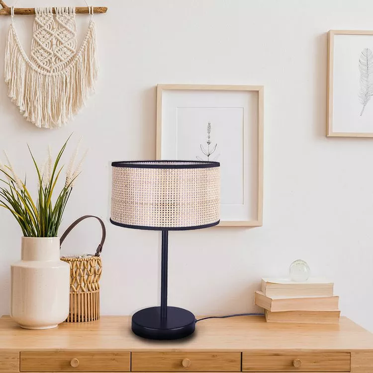 DESIGN :Une fois installée et éclairée, les motifs que forme le cannage de la lampe de table LORETTA en rotin naturel viendront créer de jolies ombres portées dans votre intérieur.
