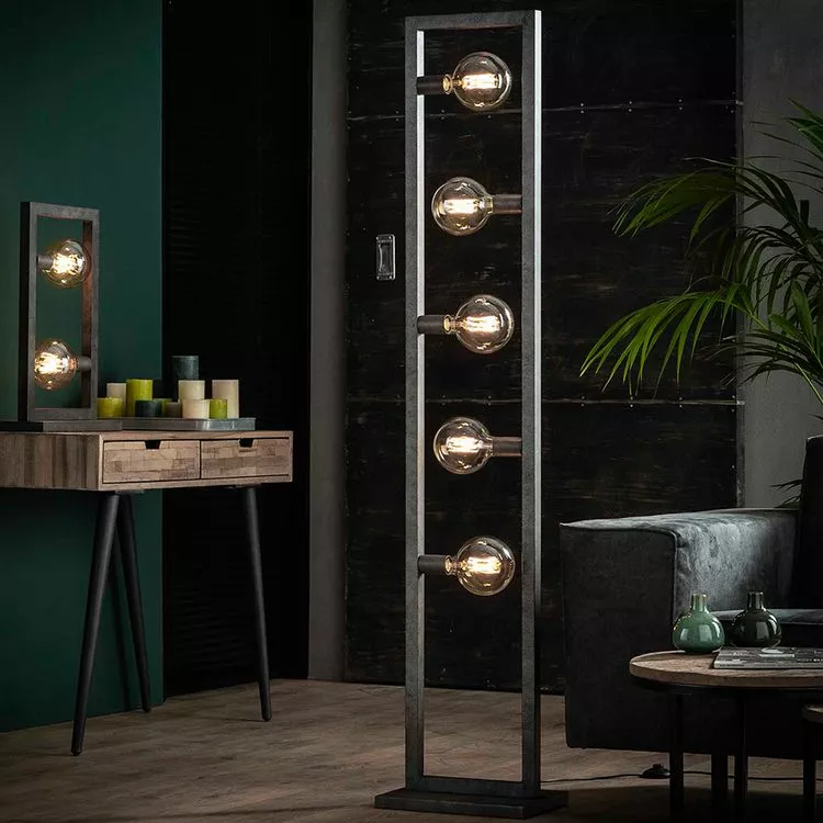 L 34 x P 34 x H 165 cm. Longueur du cordon : 120 cm. Luminaire industriel en métal gris effet vieilli.Garantie 2 ans + 1 an NOUVO MEUBLE. Fabrication de qualité européenne.