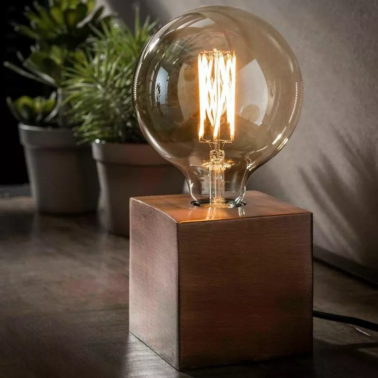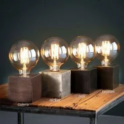 Craquez pour cette petite lampe de chevet ou de bureau. Passe partout, elle peut également trouver sa place dans votre salon. Cette lampe est constituée d’un block en métal de couleur cuivre, mesurant 10 cm sur 10 cm. Pour un rendu similaire à notre photo, ajoutez une ampoule à filament 12,5 cm de diamètre.