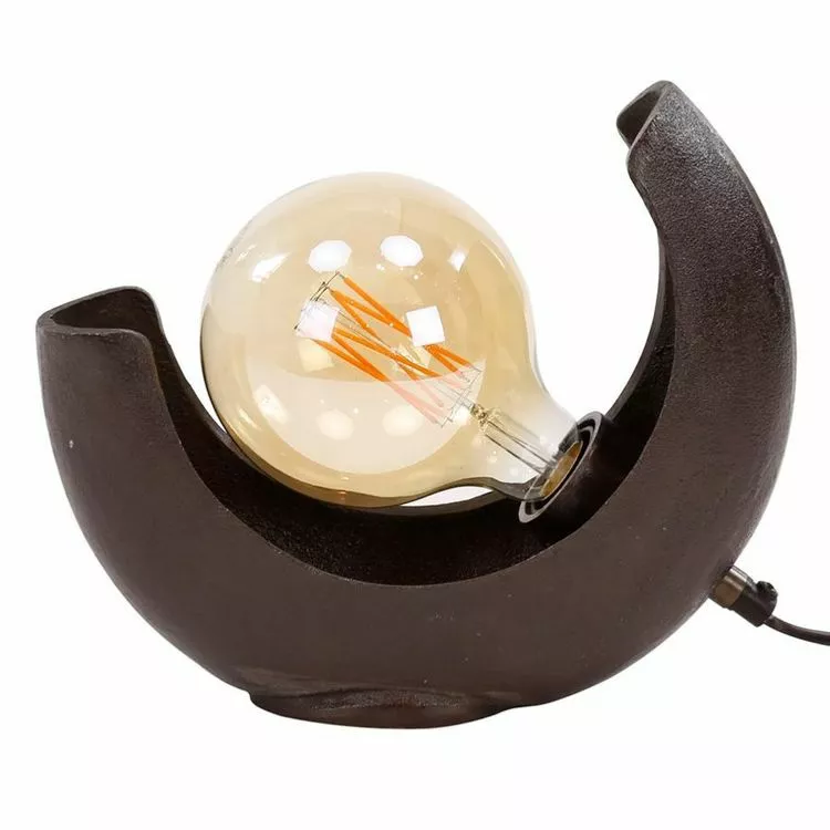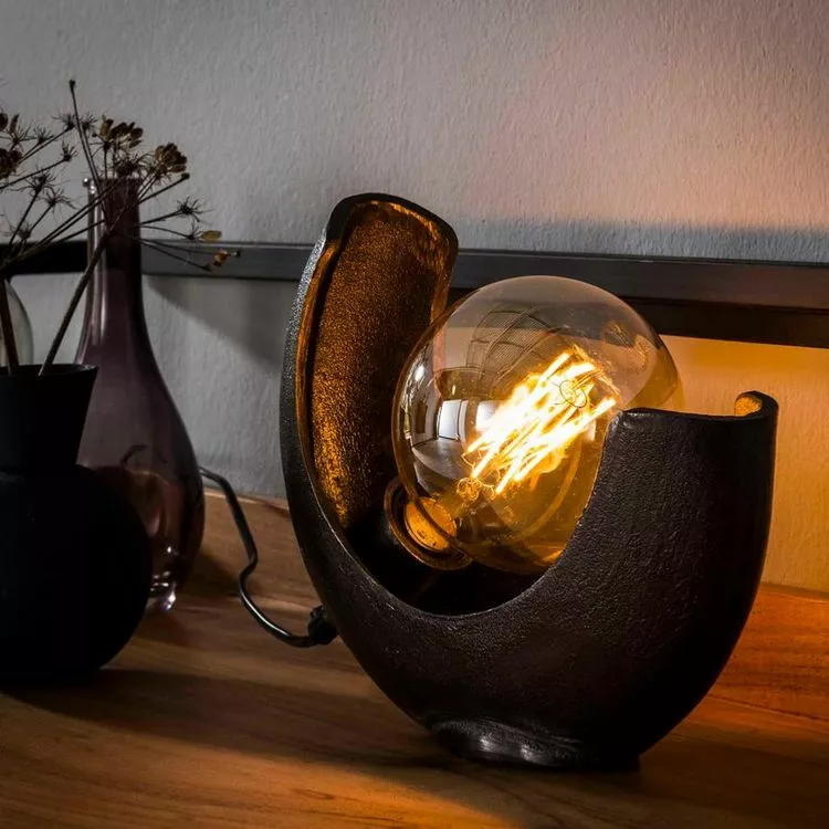 Totalement fait d’aluminium et de nickel noir, la lampe Ă poser assure une solidifiĂ© et aucune altĂ©ritĂ© dans le temps. Elle va vous combler de nombreuses annĂ©es. La forme ajourĂ©e style lune dĂ©voile totalement la source lumineuse, c’est pourquoi il faut choisir l’ampoule avec soin. Une grosse ampoule Ă filament, elle sera aussi belle allumĂ©e qu’Ă©teinte, elle va sublimer ce luminaire design.
