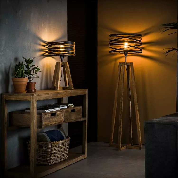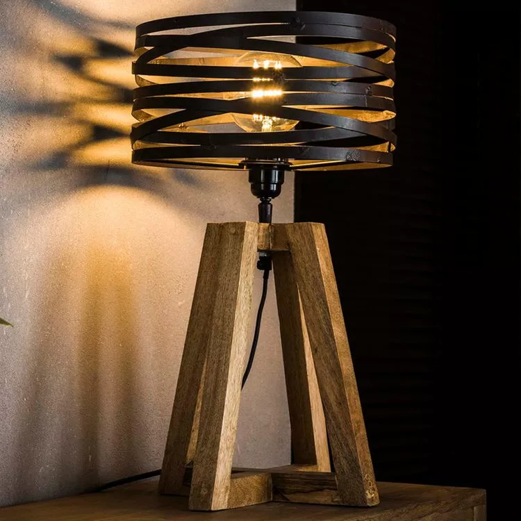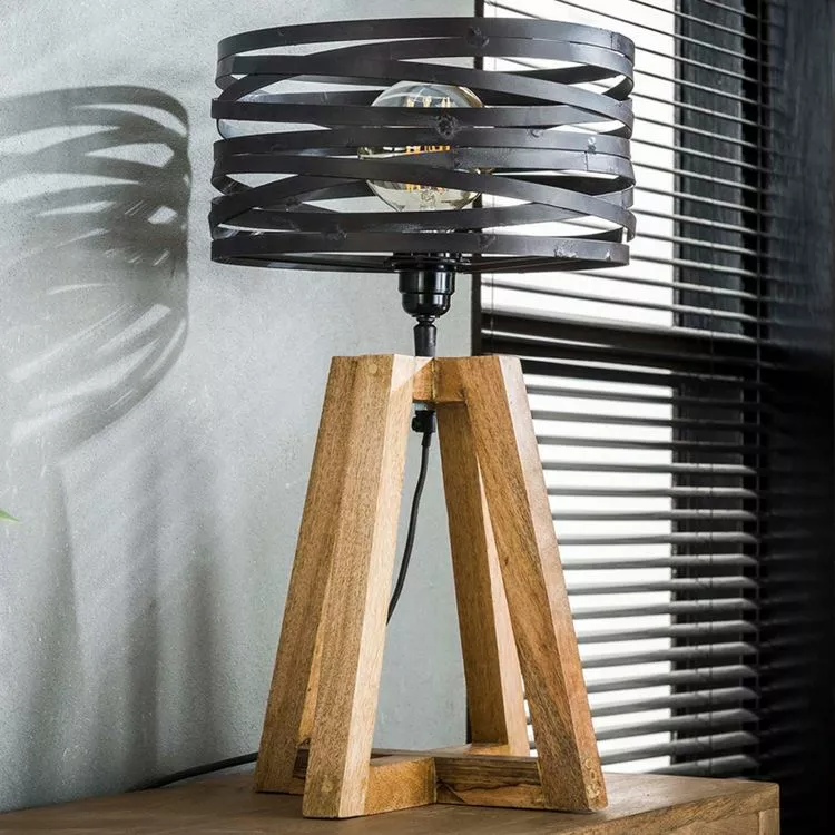 L 29 x P 29 x H 50 cm. Longueur du cordon : 120 cm. Lampe moderne avec abat-jour en métal et piètement en bois. Garantie 2 ans + 1 an NOUVO MEUBLE. Fabrication de qualité européenne.