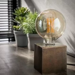 Discrète et moderne, la petite lampe SQUARE va s’inviter chez vous, elle trouvera sa place dans toutes les pièces de la maison, sur un bureau, un buffet ou une table de chevet. Avec son, design très simple il est possible de la placer dans une décoration moderne comme industrielle, design comme naturelle. Elle est composée d’un seul block métallique de couleur bronze, mesurant 10 cm sur 10 cm. Pour un rendu similaire à notre photo, choisissez une ampoule à filament 12,5 cm de diamètre.