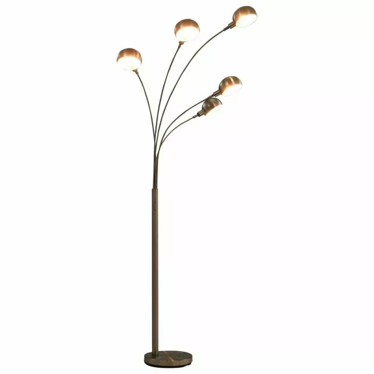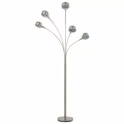 La lampe a arc se distingue par les 5 lumieres reglables individuellement en hauteur, ce qui vous permet de la regler et de la personnaliser a votre guise. La structure est en acier robuste et confere aux lampes une stabilite et un look extraordinaire, qui se marient parfaitement aux espaces de vie modernes et scandinaves. Fabrique dans un materiau de qualite superieure, l’abat-jour est facile a entretenir. Vous pouvez choisir des ampoules E14 de differentes couleurs pour creer une ambiance apaisante et reposante.