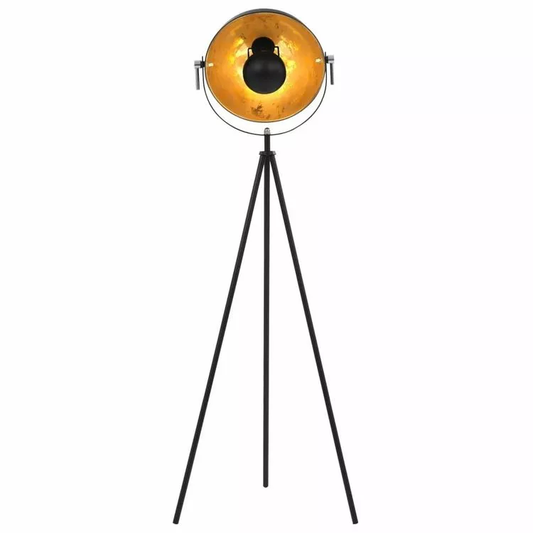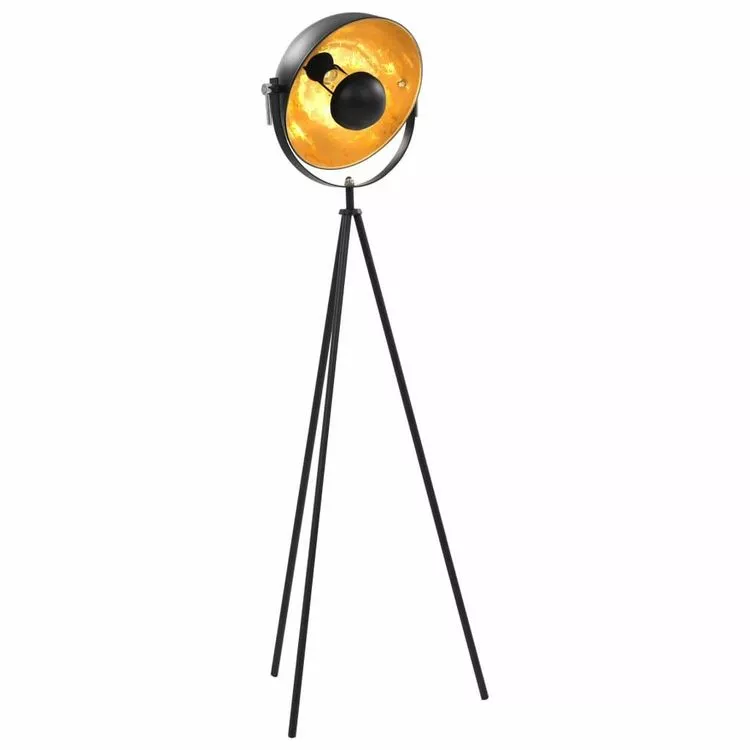 Ce lampadaire extraordinaire, avec son abat-jour rotatif noir et sa feuille doree luxueuse a l’interieur, enrichit visiblement votre piece et sera l’eclairage ideal pour une ambiance moderne !