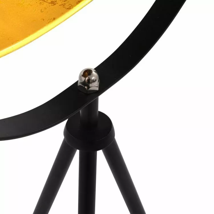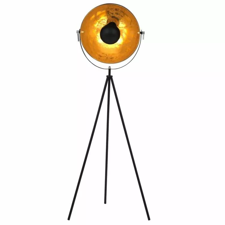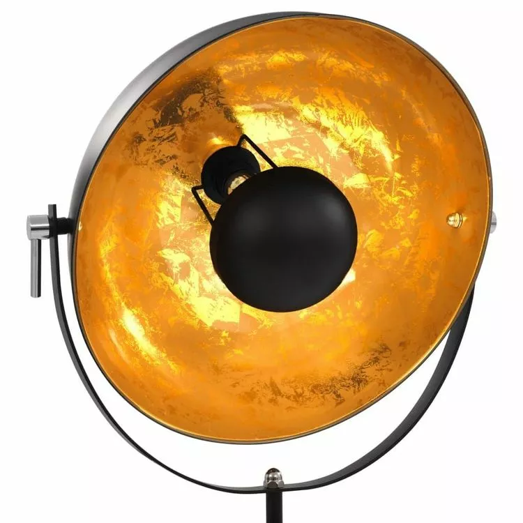 Ce lampadaire extraordinaire, avec son abat-jour rotatif noir et sa feuille doree luxueuse a l’interieur, enrichit visiblement votre piece et sera l’eclairage ideal pour une ambiance moderne !