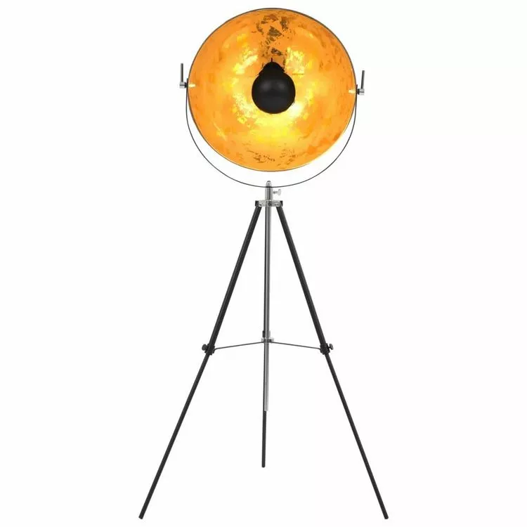 Ce lampadaire extraordinaire, au design a hauteur reglable, avec son abat-jour rotatif noir et sa feuille doree luxueuse a l’interieur, enrichit visiblement votre piece et sera l’eclairage ideal pour une ambiance moderne !
