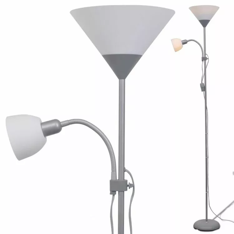 Ce lampadaire, avec deux interrupteurs marche/arret, est tres pratique a utiliser et est ideal pour toute piece qui a besoin d’une solution d’eclairage. Ce lampadaire se compose d’un uplighter et d’une lampe de lecture, remplissant deux fonctions d’eclairage a la fois.