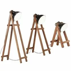 Ces lampes disposent d’un design vintage et attirent l’attention dans tout interieur. L’abat-jour en fer, avec une finition noire, diffuse une lumiere chaude et atmospherique. Le cadre en bois massif de manguier, avec une finition marron grange erode, s’integrera parfaitement dans un interieur rural ou industriel. Cet ensemble de lampes a 3 tailles differentes pour repondre a des besoins specifiques. L’abat-jour a une douille E27 pour une ampoule d’un maximum de 25 W. Vous pouvez choisir et installer une ampoule E27 avec differentes couleurs de lumiere, creant une atmosphere de detente et de repos. De plus, l’interrupteur au sol est inclus pour faciliter l’allumage et la coupure.