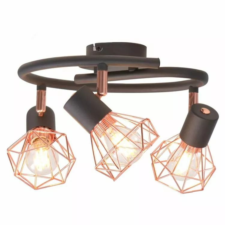 La lampe peut etre facilement montee au mur ou au plafond grace a sa base en metal noir de haute qualite. Les abats-jour des projecteurs uniques en fil de fer cuivre ajoutent a son style industriel et creent un effet agreable, lorsque la lumiere est emise a travers eux pour eclairer chaque coin de la piece.