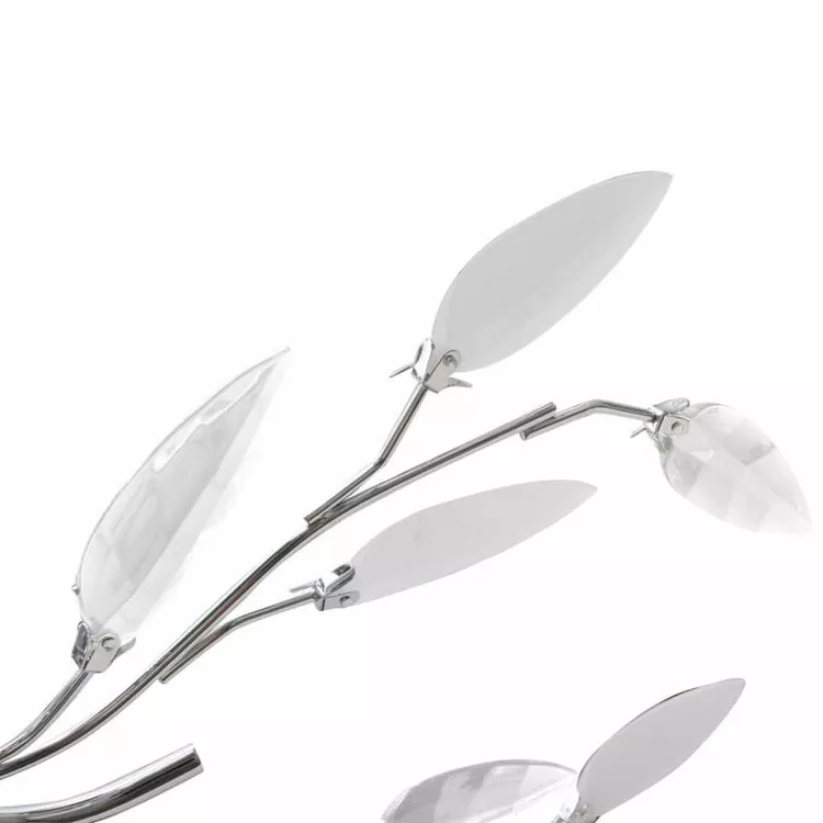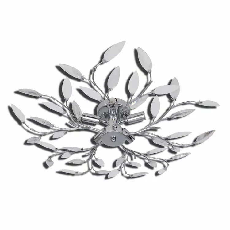 Ce magnifique plafonnier avec d’elegantes decorations de feuilles acryliques sur les bras sera un excellent choix pour orner votre salon ou chambre a coucher. Sa finition chromee donne a cette lampe un style contemporain.